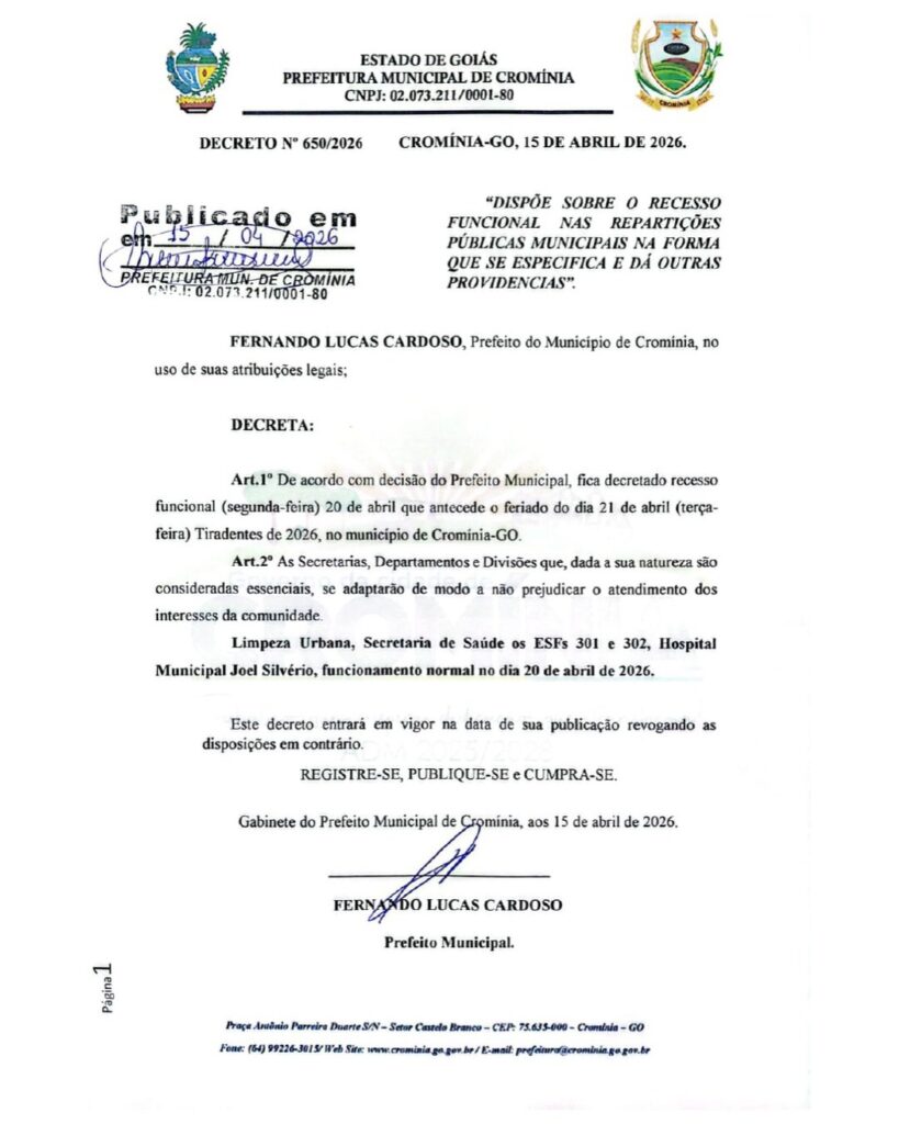 👉 Os serviços essenciais seguem funcionando normalmente, garantindo atendimento à população.