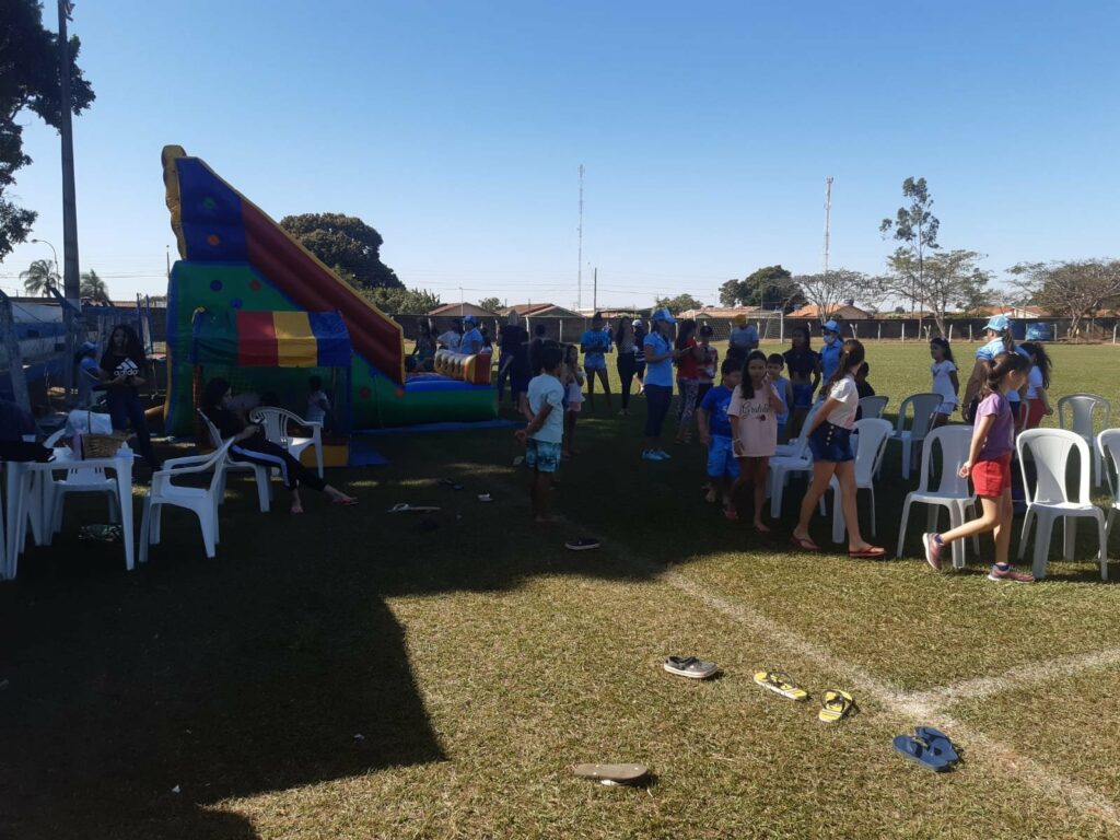 A Equipe da Secretaria de Ação Social juntamente com o CRAS e Secretaria de Esportes estão realizando a Colônia de Férias do CRAS, com muitas brincadeiras, diversão e lanche para as crianças e adolescentes.